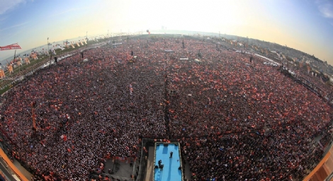 Кеча Туркия Бош вазири Ражаб Эрдўғон раислик қиладиган Адолат ва Тараққиёт Партияси Истанбулда янги очилган буюк Янгиқапи майдонида 2 миллион кишининг йиғилгани иддао қилинаётган сайлов олди митинги ўтказди. Ростдан ҳам муҳташам митинг эди бу. Балки, дунё сиёсат тарихининг энг катта митинги эди бу. Балки, 21 асрда маъноси қолмаган митинг эди бу.