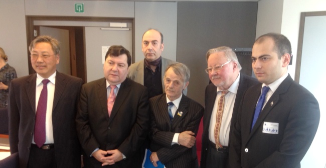 Мустафу Джемилева в Брюсселе сопровождали советник Меджлиса крымскотатарского народа по экономическим вопросам Рустем Умеров и представитель Меджлиса в Германии Ахмет Озай.