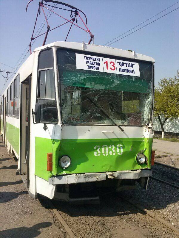 Кеча тунги соат 10.30 да Тошкентнинг Чилонзор тумани 7-кварталида бирданига уч трамвай тўқнашиб кетди. Бекатда тўхтаб, йўловчи олаётган 9-рақамли трамвайни иш вақтини тугатиб, паркка қайтаётган 26-рақамли трамвай туртиб юборган. Трамвайлар тўқнашуви содир бўлган жойга етиб келган яна бир трамвай ҳалокатнинг катталашишига кўмаклашган.