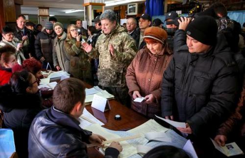 Расмда – Президент Петр Порошенко овоз бериш учун сайлов участкасига келди.