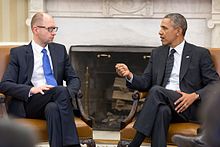 Расмда - Арсений Яценюк ва Барак Обама, 12 март 2014 йил, Вашингтон.