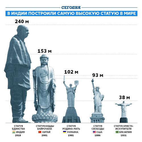 Валлабхаи Пателнинг ҳайкалининг баландлиги 182 метр, постамент билан бирга 240 метр. Масалан, Нью-Йорктаги “Озодлик” ҳайкалининг баландлиги 46 метр, постамент билан 93 метр.